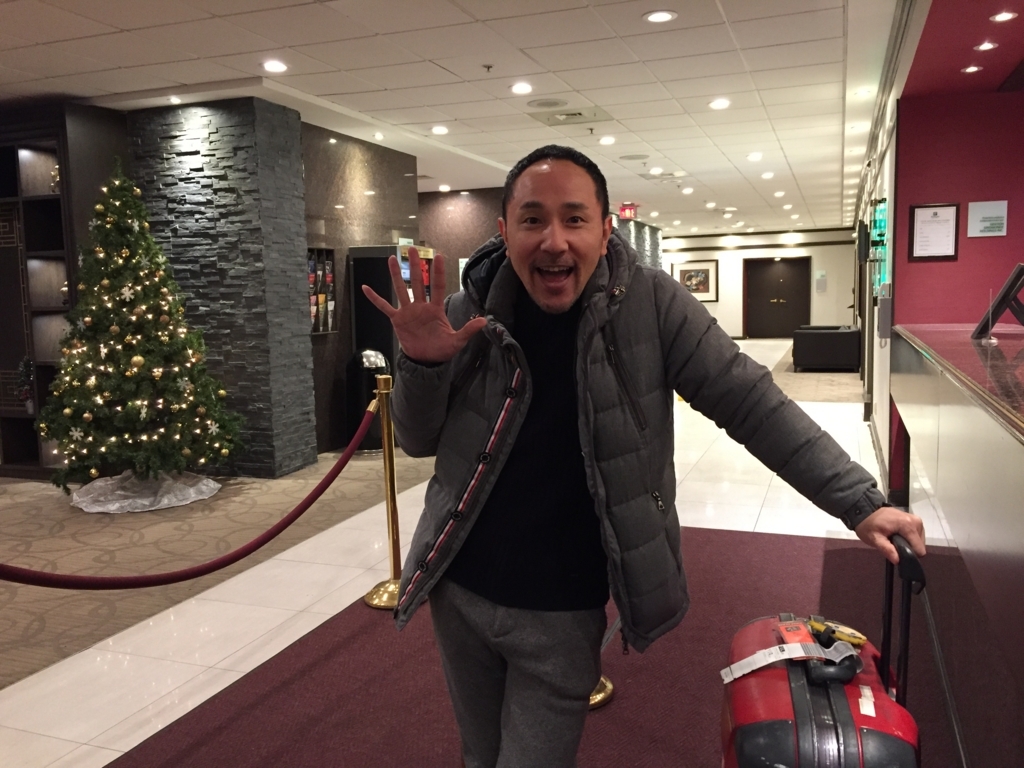 バンクーバー経由でモントリオール入りした松山。フライトは20~30分遅れましたが、無事に到着!
